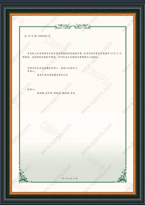 您的位置: 首頁(yè) ->  資質(zhì)認證 -> 具有廢料收集結構的精密沖壓模具證書(shū)